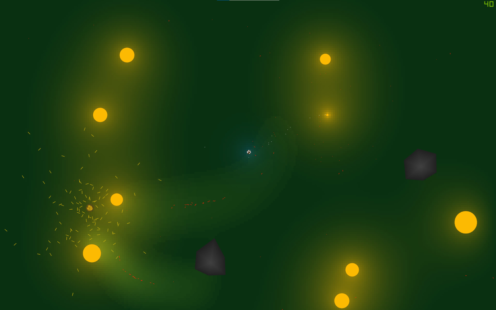 Food is generated at the start around the world and is represented by yellow cheese wheels. Worker ants will try and find them, afterwards they will try and take a piece of cheese and bring it home.